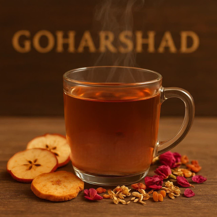 این دمنوش از تکههای طبیعی و خشکشدهی به و سیب تهیه شده و با افزودن مقدار دلچسبی از گل محمدی و بهار نارنج، طعمی گرم، لطیف و معطر پیدا کرده است.